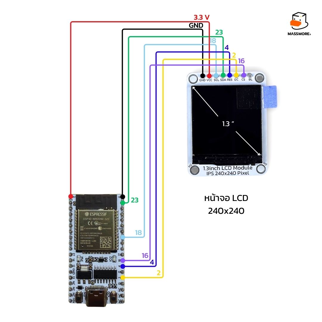 ตัวอย่างที่ 1 การแสดงผลกราฟิก UI หน้าจอ 1.3" หรือ 1.54" TFT LCD 240x240 Pixel Driver ST7789