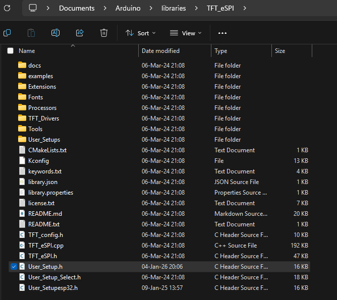 User_Setup.hให้ตรงกับบอร์ดก่อนใช้งาน